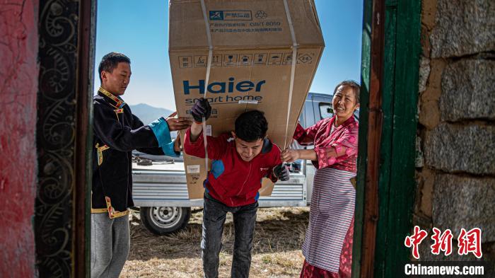 圖為京東配送員給定日縣城消費者提供大件家電送貨上門服務。資料圖 劉暢 攝