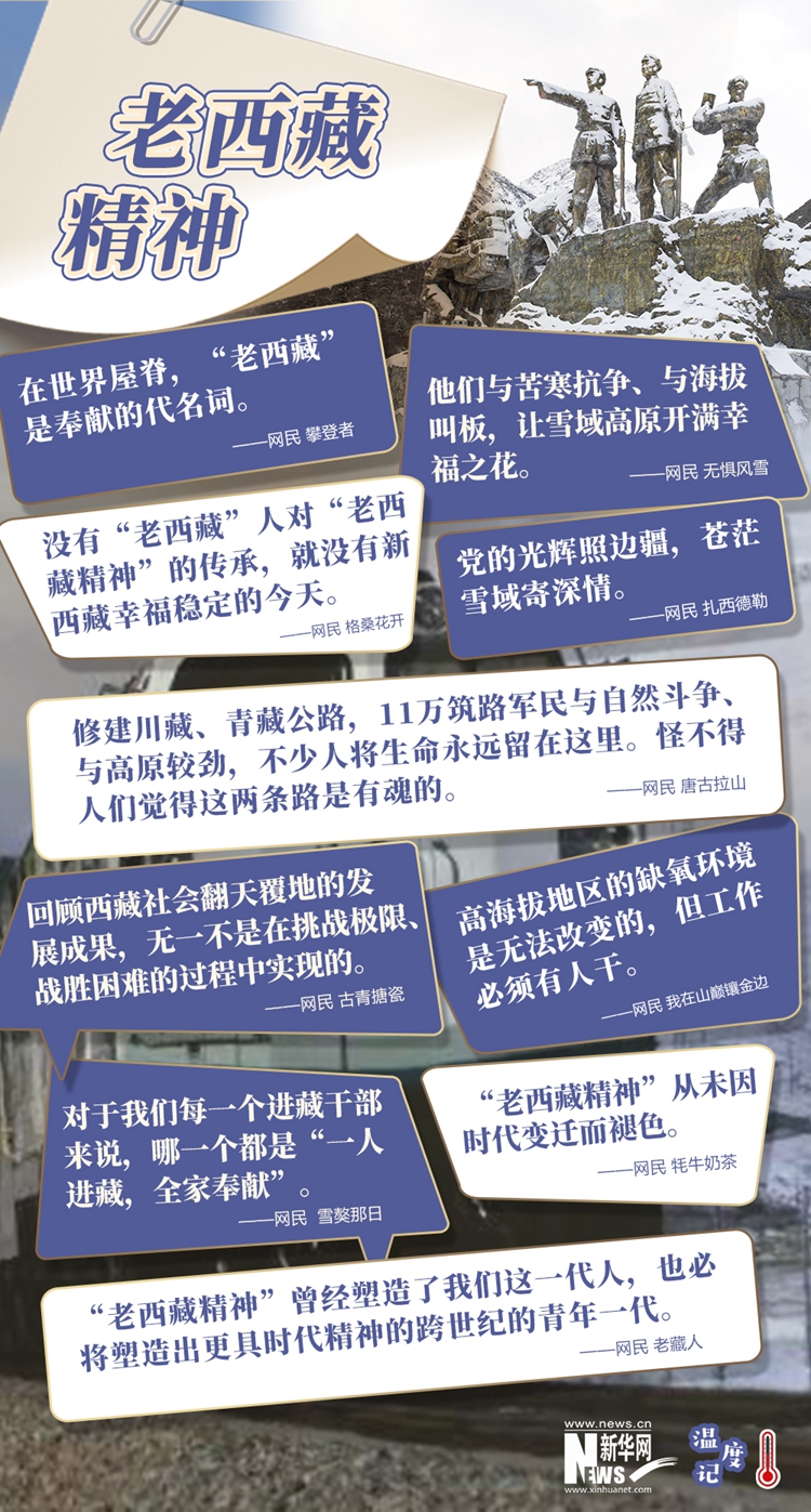 此后的幾十年間,一批又一批、一代又一代援藏干部、駐藏官兵踏上世界屋脊,扎根雪域高原,和當?shù)厝罕娨坏?,推動西藏各項事業(yè)又快又好發(fā)展,讓千年雪域高原變了樣,也賦予“老西藏精神”更為豐富的時代內(nèi)涵?!吧谶@里很脆弱,生命在這里也很頑強。”網(wǎng)民們在社交平臺上表達對雪域高原心向往之的同時,更不忘歌頌歷久彌新的“老西藏精神”。歷經(jīng)時代的變遷,這種精神正在感召并鼓舞更多人,扎根邊疆,造福西藏,讓那里的山水永遠碧藍、綺麗,讓那里的土地永遠充滿希望、幸?;ㄩ_。(文字:徐可 海報設計:王曄)