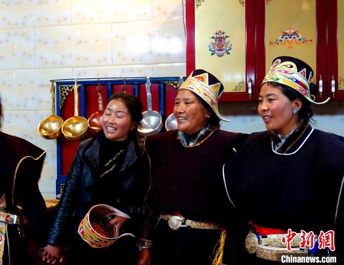 圖為藏族姑娘端著吉祥切瑪。冉文娟 攝