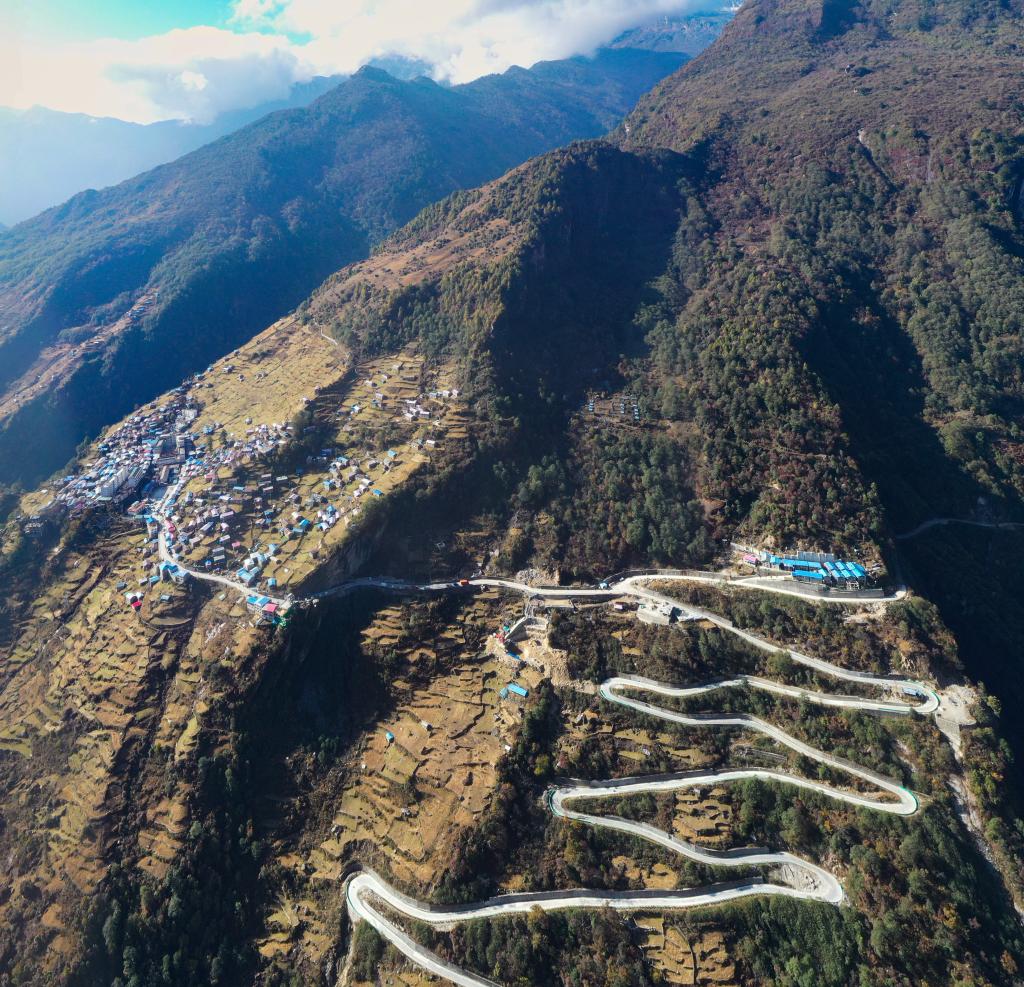 陳塘鎮(zhèn)的夏爾巴婦女在村頭開心聊天(11月24日攝)。 新華社記者 普布扎西 攝