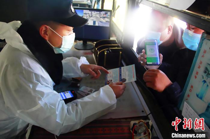 圖為2021年2月7日,那曲市公安局乃吉溝一級公安檢查站民警開展防疫檢查。資料圖 西藏自治區(qū)公安廳供圖