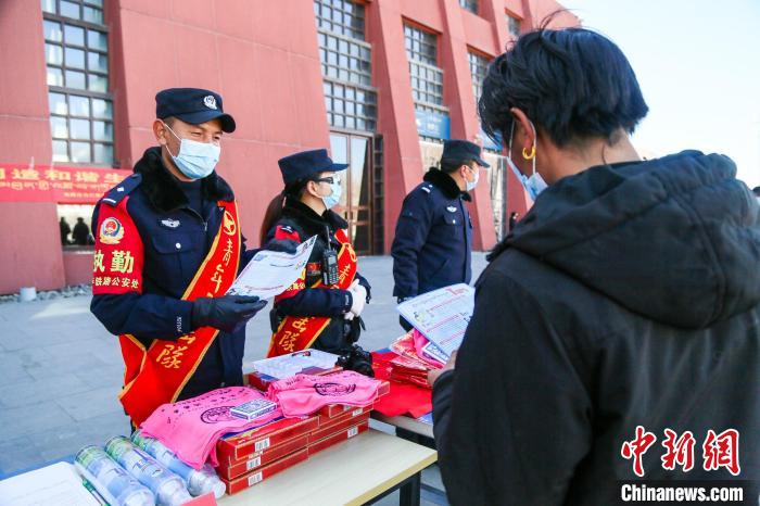 圖為拉薩鐵路公安民警聯(lián)合地方公安民警開展禁毒反詐宣傳。拉薩鐵路公安處供圖