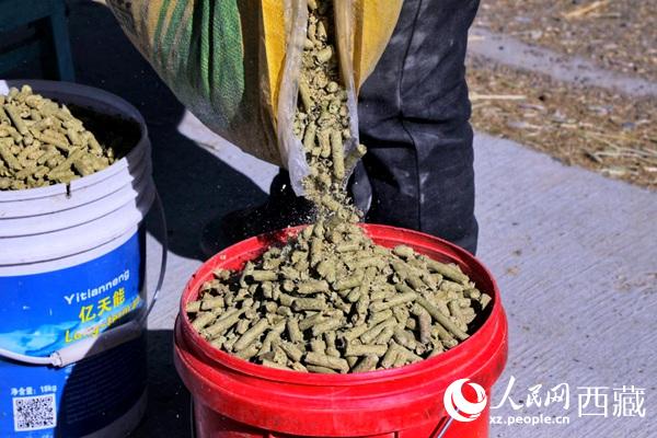 生產(chǎn)出來的顆粒飼草。人民網(wǎng) 李海霞攝