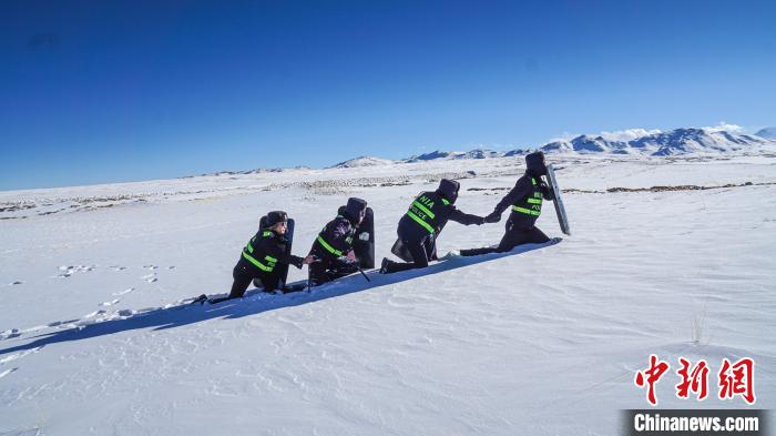 又經(jīng)過(guò)2個(gè)多小時(shí)的艱難跋涉,巡邏隊(duì)終于抵達(dá)目的地點(diǎn)位。勘察、鏟雪、描紅……一個(gè)環(huán)節(jié)也不能出錯(cuò),界碑就是生命,就是戍邊人的信仰。