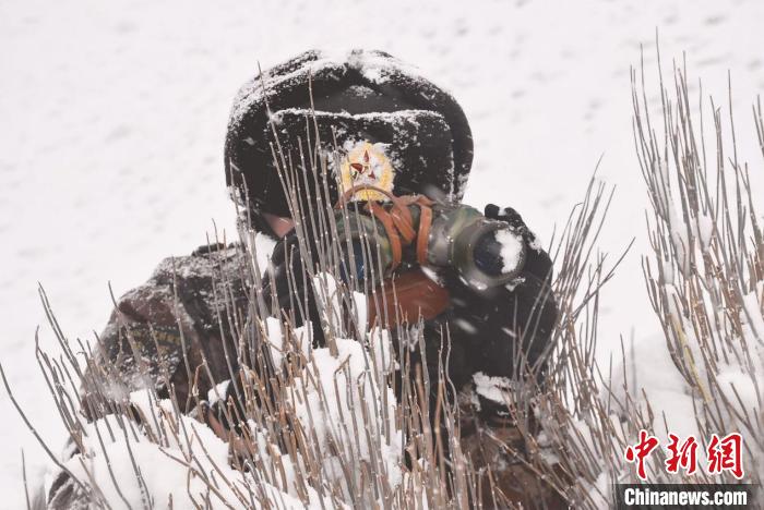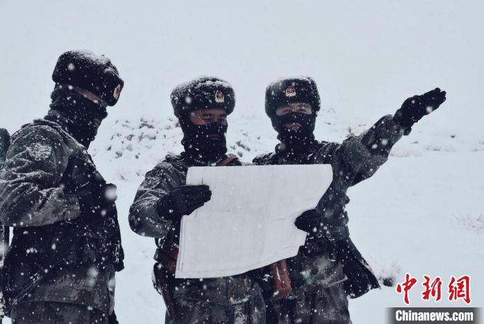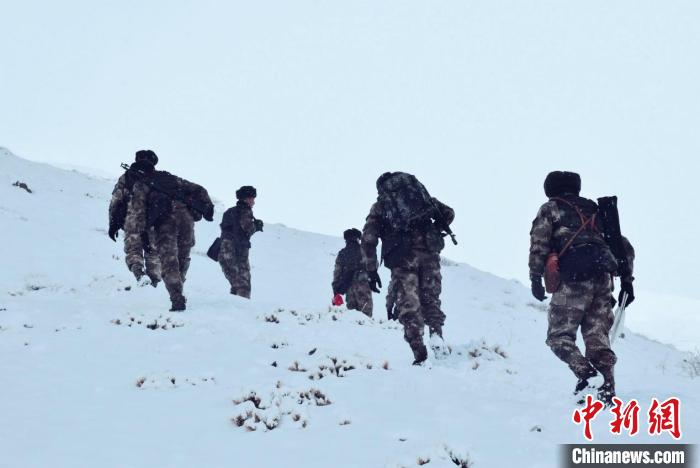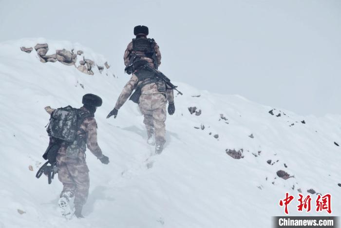 由于道路積雪較厚,車輛無法通行。官兵們采取徒步方式向點位前行,巡邏分隊在風雪中艱難前行,隨著海拔的逐漸增加,氧氣愈發(fā)稀薄,此時的氣溫已經接近零下30攝氏度。