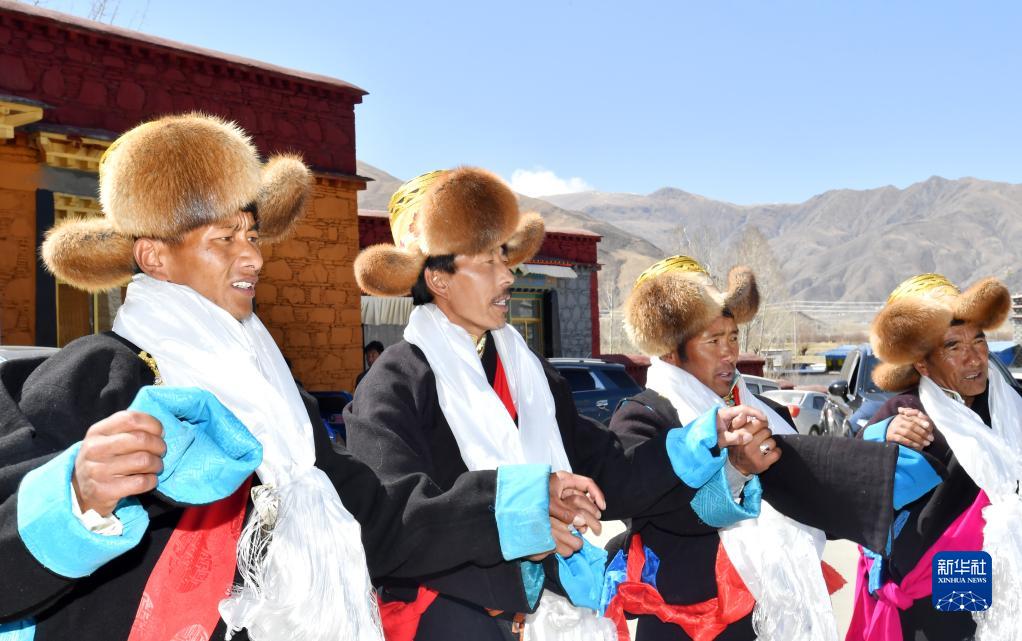 3月3日,西藏山南市貢嘎縣崗堆鎮(zhèn)農(nóng)民唱歌跳舞,歡度藏歷水虎新年。新華社記者 覺(jué)果 攝