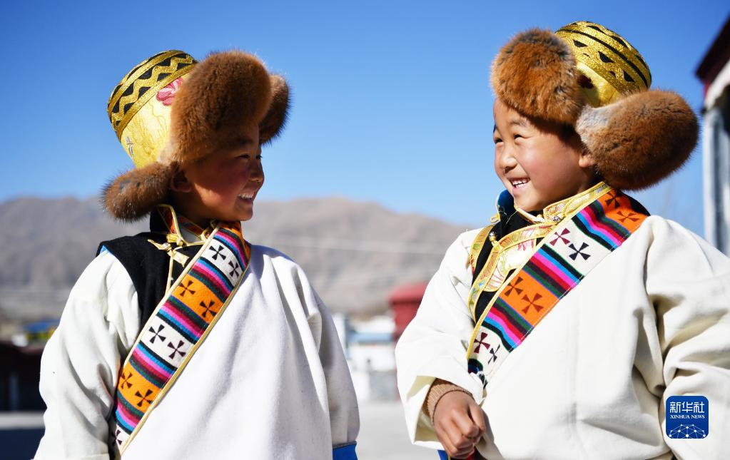 3月3日,西藏山南市貢嘎縣崗堆鎮(zhèn)群眾身著藏裝歡度藏歷水虎新年。新華社記者 覺(jué)果 攝