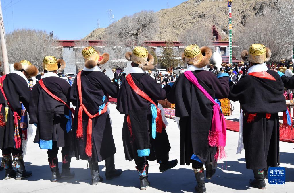 3月3日,西藏山南市貢嘎縣崗堆鎮(zhèn)農(nóng)民穿著嶄新的氆氌藏裝參加藏歷新年活動(dòng)。新華社記者 覺(jué)果 攝