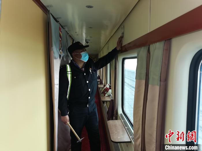 資料圖為嘎瑪達吉對列車服務(wù)設(shè)施進行檢查。青藏集團公司供圖
