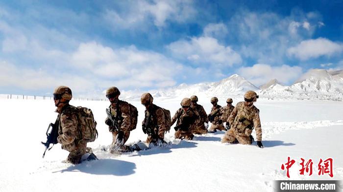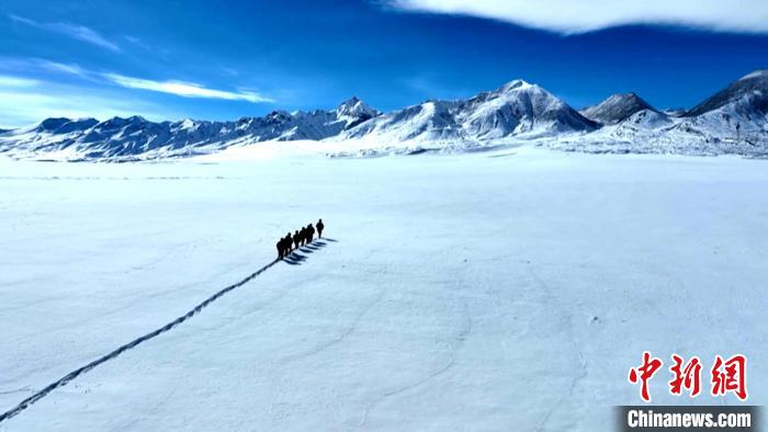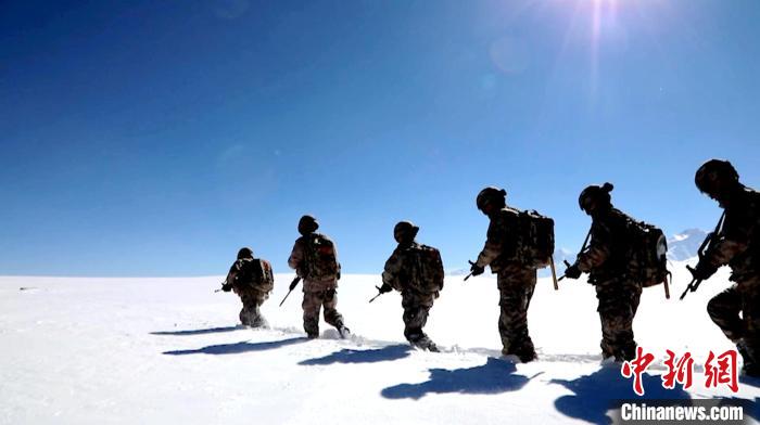 圖為巡邏官兵踏雪前行。西藏軍區(qū)供圖
