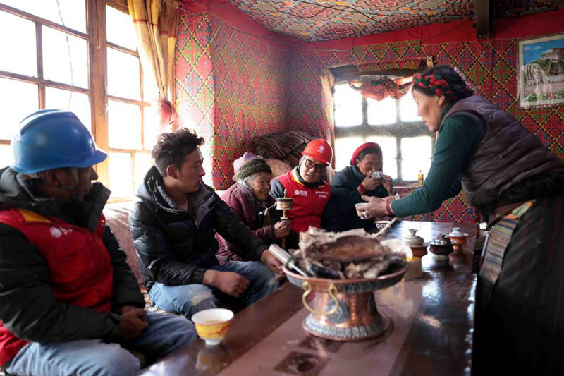 國網(wǎng)墨竹工卡縣供電公司員工與讓桌家人一起談論著。閆昱翰攝