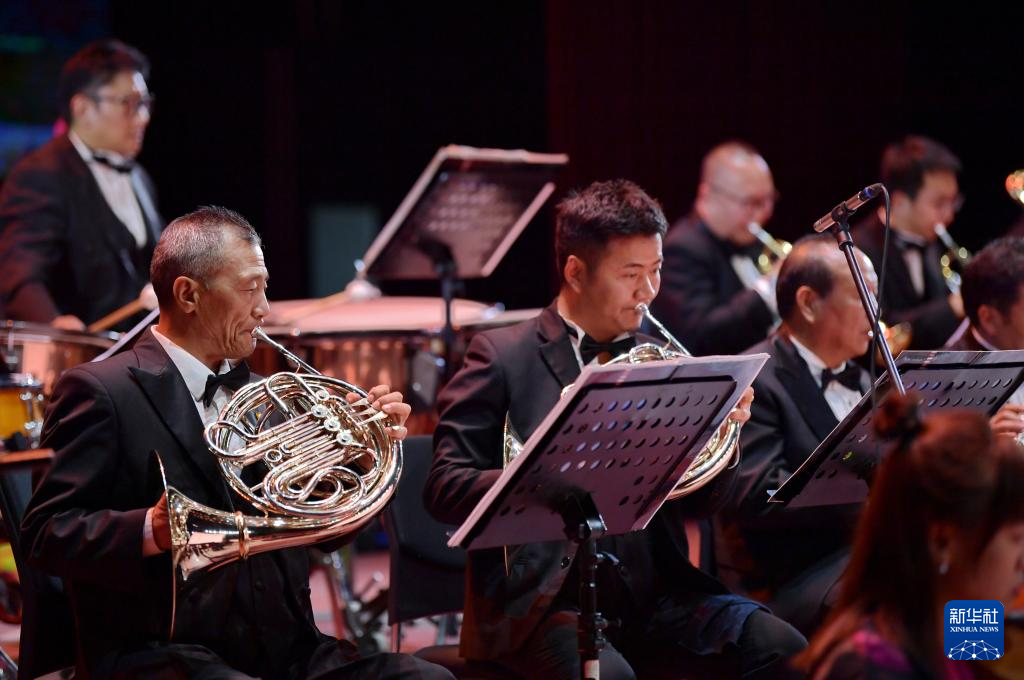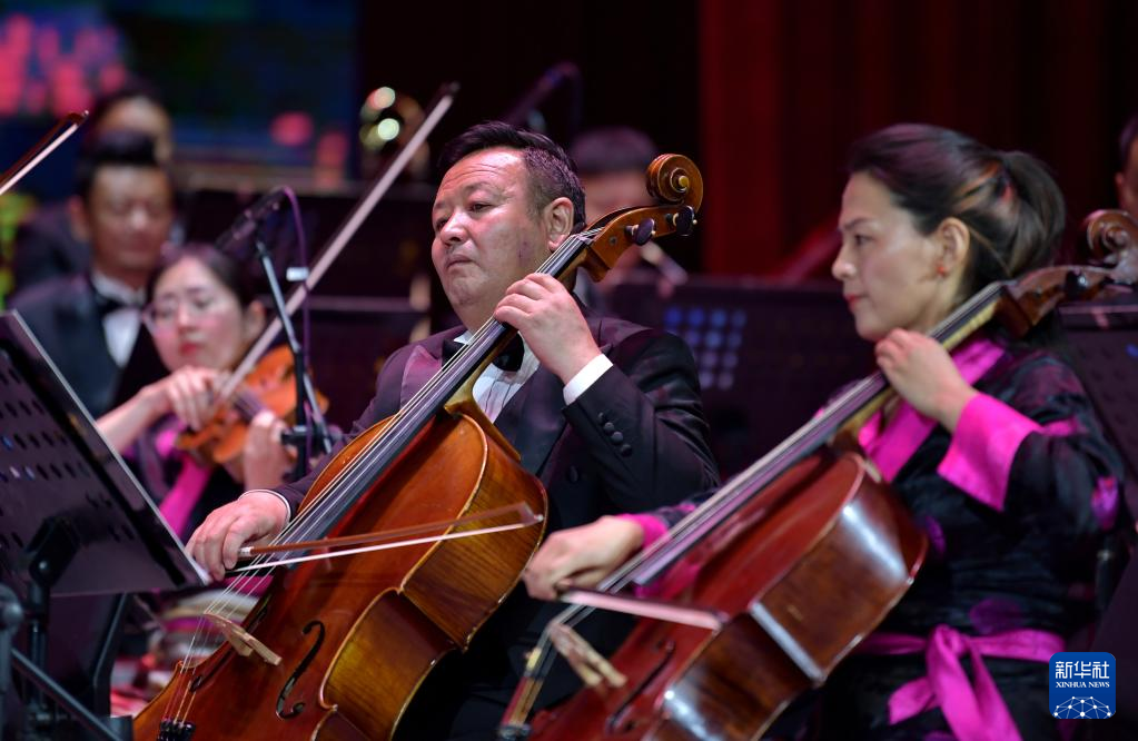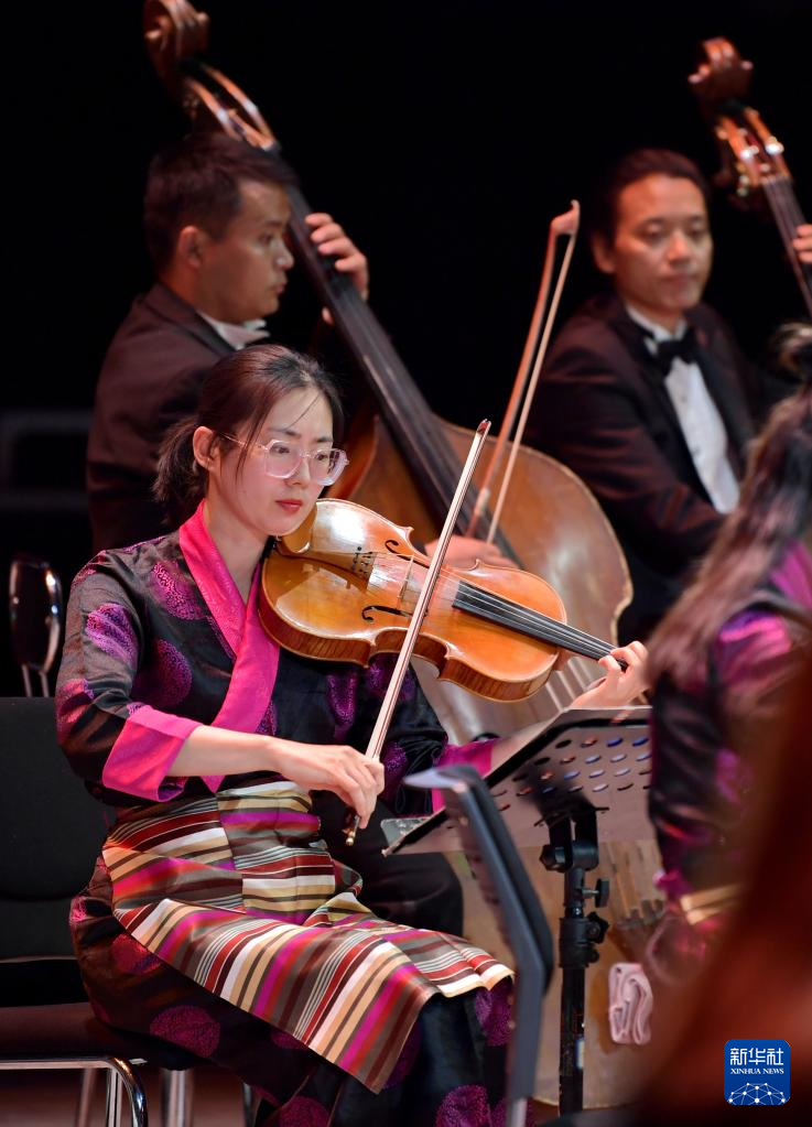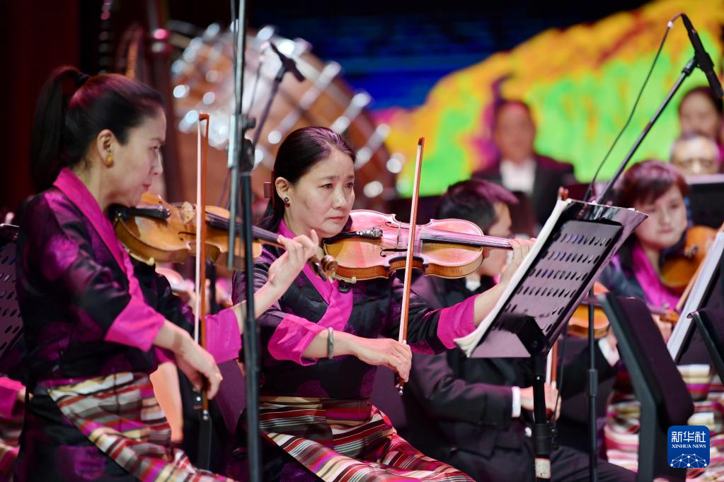 西藏愛樂樂團(tuán)的藝術(shù)家在演奏交響樂《古格幻想》(4月3日攝)。新華社記者 張汝鋒 攝