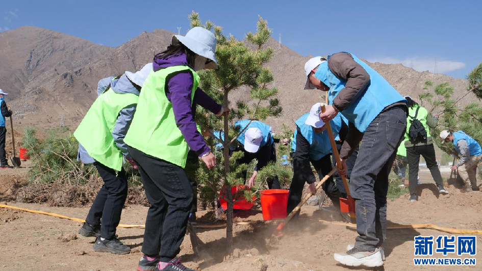 圖為植樹活動現(xiàn)場(4月16日攝)。新華網(wǎng)發(fā) 貢桑央吉(實習生)攝