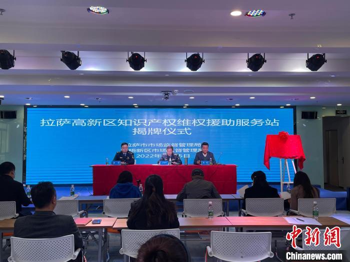 圖為拉薩市高新區(qū)知識產(chǎn)權(quán)維權(quán)援助服務(wù)站揭牌儀式現(xiàn)場。貢嘎來松 攝