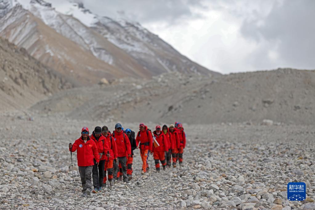 科考隊員正在返回大本營(5月5日攝)。新華社記者 姜帆 攝