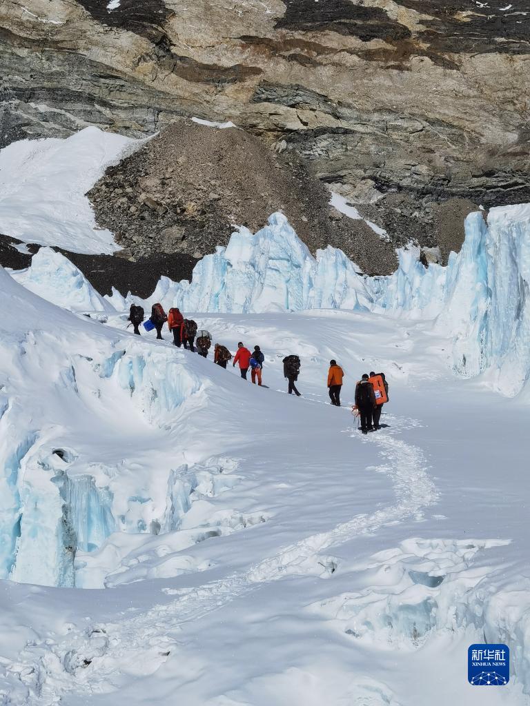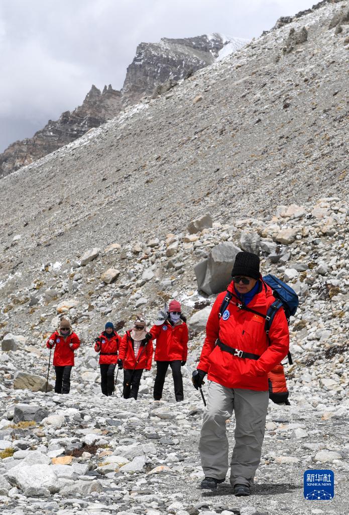 冰雪與污染物考察分隊在東絨布冰川區(qū)域進行科學考察(5月7日攝)。新華社發(fā)(康世昌 攝)