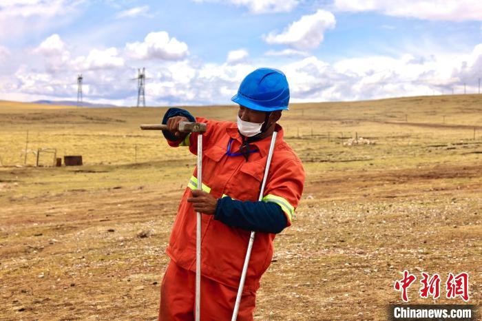 青藏聯(lián)網(wǎng)工程年檢工作人員正在進(jìn)行走線?!¢Z昱翰 攝
