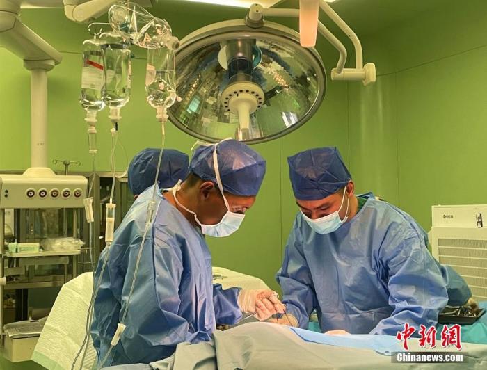 圖為5月7日,次仁云丹(左)在拉薩為患者進行手術治療。 中新社記者 冉文娟 攝