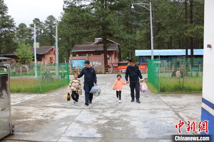 圖為民警接扎西江措(左一)和崗嘎拉姆(右二)到派出所過周末。旺旦次仁 攝
