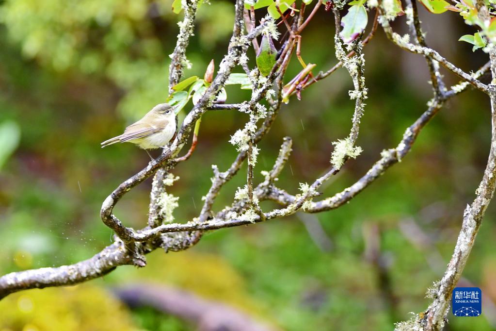 棲息在玉麥鄉(xiāng)原始森林里的黃腹樹鶯(5月31日攝)。新華社記者 張汝鋒 攝