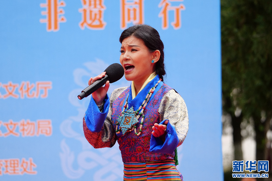 6月11日,拉薩朗瑪自治區(qū)級傳承人次仁央宗在演唱朗瑪《念波格?!?。新華網 旦增努布攝