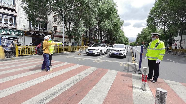 據(jù)統(tǒng)計,目前拉薩市在措美林路口等16處地點設置了“禮讓行人”標識。“我們結(jié)合市區(qū)道路情況,設計了‘禮讓行人’文字標識的字高、字寬、間距,并把文字標識設置在停止線前方的位置,以便駕駛員能清楚地看到,引導機動車駕駛員主動禮讓行人,保障行人過街安全?!崩_市公安局交警支隊秩序管理大隊民警達吉告訴記者。