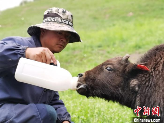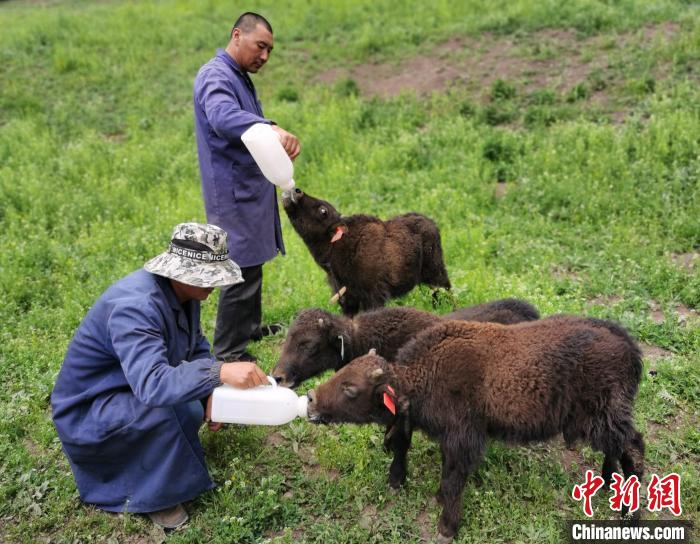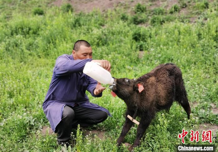 圖為給小牛犢喂奶。 張?zhí)砀?攝