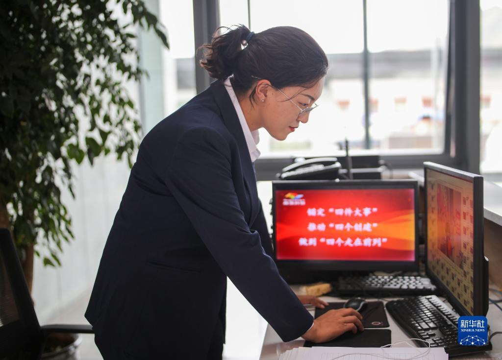 “格?;ㄩ_”大學生就業(yè)創(chuàng)業(yè)特訓營學員、西藏藏建科技股份有限公司職員旦珍在工作中(2022年6月24日攝)。新華社記者 姜帆 攝