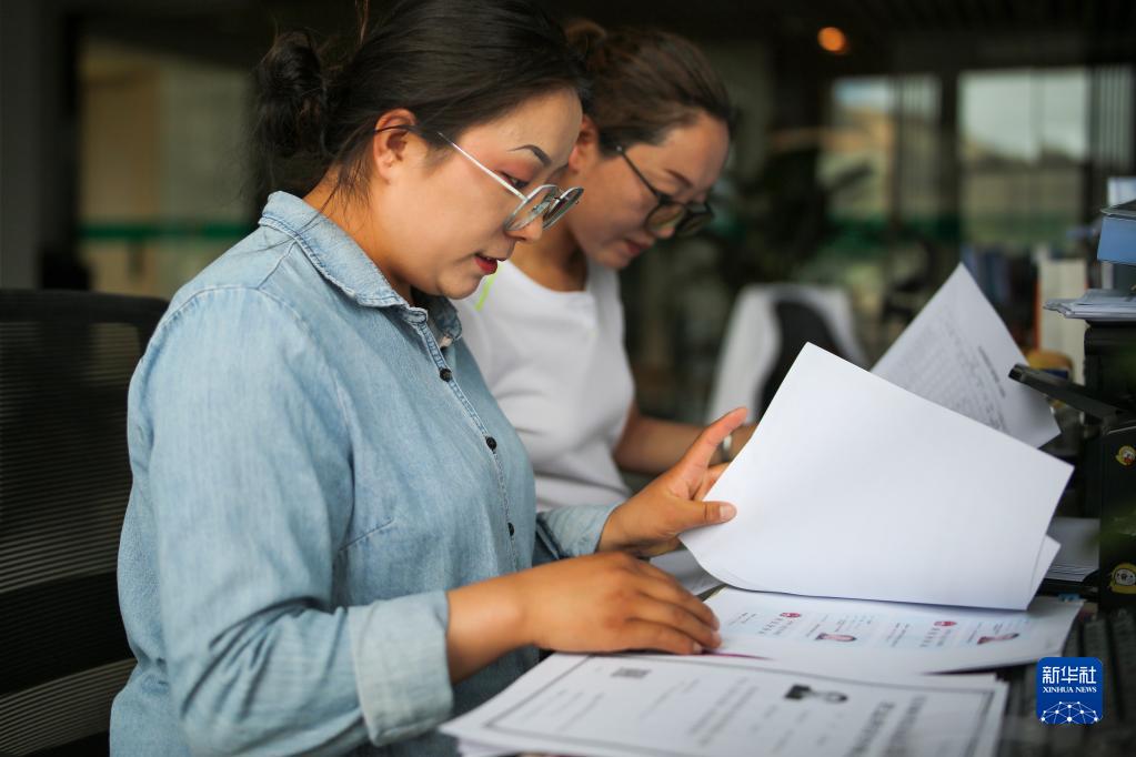 “格?;ㄩ_”大學生就業(yè)創(chuàng)業(yè)特訓營學員、西藏藏建科技股份有限公司職員次仁瓊達(左)在工作(2022年6月24日攝)。新華社記者 姜帆 攝