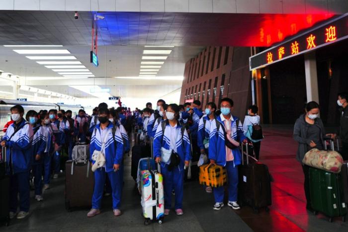 2020年7月,遼寧省遼陽市第一中學(xué)西藏班的126名藏族學(xué)生順利完成初中課程,返回西藏家鄉(xiāng)參加內(nèi)地西藏班中考,準(zhǔn)備開始新的學(xué)習(xí)和生活。 中新社記者 張偉 攝