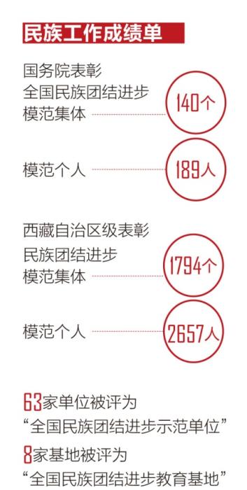 在西藏,民族團(tuán)結(jié)家庭并不是個例,有不少個人和集體也為民族團(tuán)結(jié)進(jìn)步事業(yè)作出了突出貢獻(xiàn)。目前,西藏全區(qū)榮獲國務(wù)院表彰全國民族團(tuán)結(jié)進(jìn)步模范集體140個、模范個人189人;西藏自治區(qū)級表彰民族團(tuán)結(jié)進(jìn)步模范集體1794個、模范個人2657人;63家單位被評為“全國民族團(tuán)結(jié)進(jìn)步示范單位”,8家基地被評為“全國民族團(tuán)結(jié)進(jìn)步教育基地”。拉薩、日喀則、昌都、阿里、林芝5個市地成功創(chuàng)成“全國民族團(tuán)結(jié)進(jìn)步示范地(市)”。