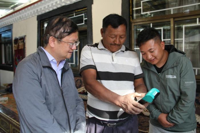 2021年3月,林慶在阿里邊境一線入戶了解三農(nóng)金融服務(wù)點(diǎn)情況。中國農(nóng)業(yè)銀行西藏自治區(qū)分行供圖