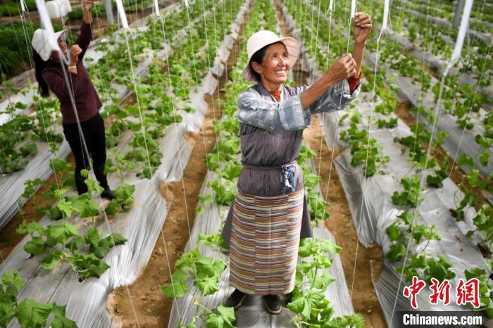 工人在西藏自治區(qū)山南市扎囊縣智慧農(nóng)業(yè)項(xiàng)目的旗云瓜地中勞作。楊華峰 攝