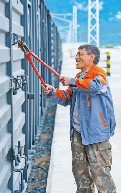 依托鐵路發(fā)展貨運(yùn),不僅降低了運(yùn)輸成本,還讓一些人找到了努力的方向。將貨物裝上叉車后,裝卸工尼瑪調(diào)轉(zhuǎn)車頭,再把貨物整齊地碼放在一側(cè)的卡車上,操作行云流水,相當(dāng)熟練。平措豎起了大拇指:“看到旁邊的大吊車沒(méi)有?尼瑪正準(zhǔn)備考證。要是考過(guò)了,工資又能長(zhǎng)不少!”
