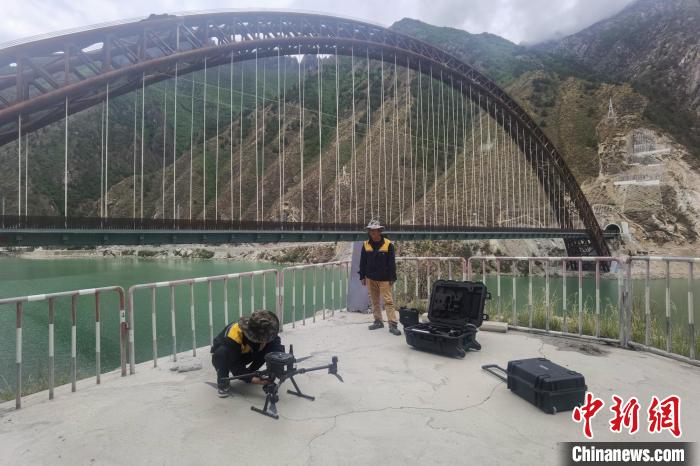 圖為拉林鐵路工作人員操作無人機進行巡檢?!±痛稳省z