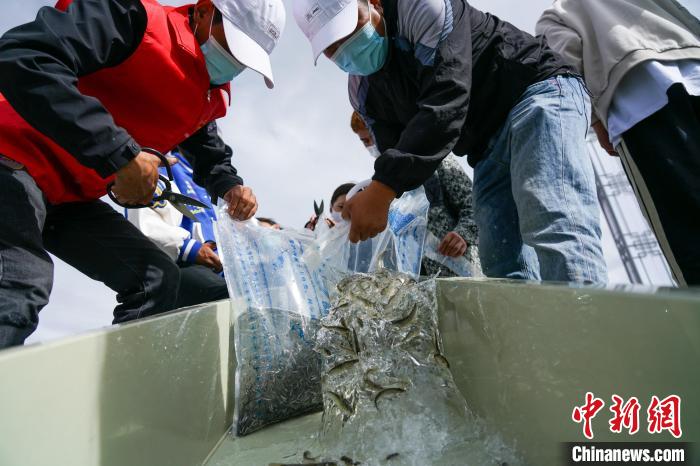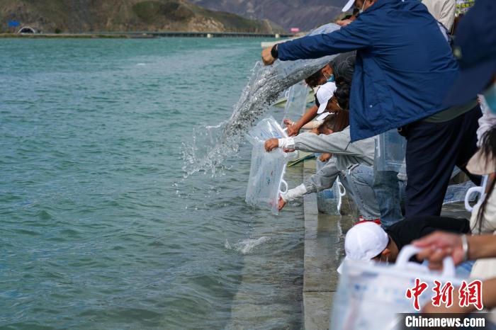 西藏民眾參與增殖放流?!〗w波 攝