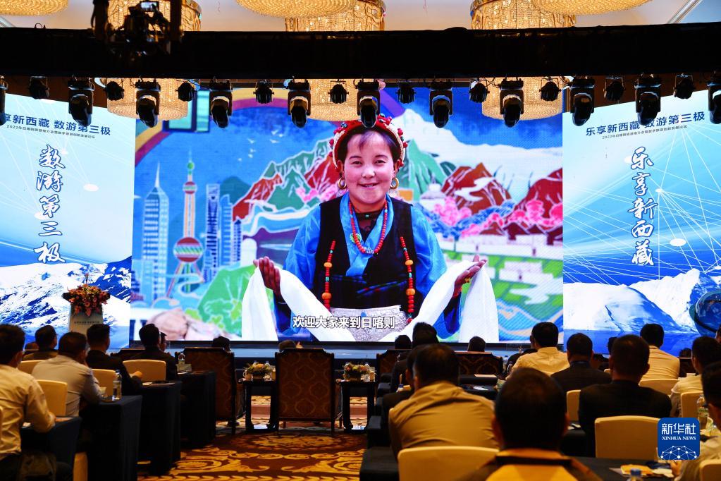 在2022年西藏日喀則旅游推介會暨數(shù)字旅游創(chuàng)新發(fā)展論壇上,國內業(yè)界人士就數(shù)字文旅和日喀則旅游數(shù)字化發(fā)展前景進行主題演講和對話(7月15日攝)。新華社記者 張汝鋒 攝