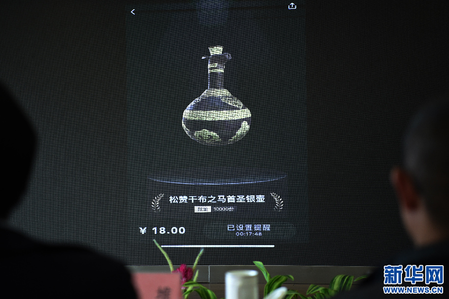 7月21日,用戶在手機(jī)端預(yù)約搶購西藏首個數(shù)字藏品《松贊干布之馬首圣銀壺》。新華網(wǎng)旦增努布 攝