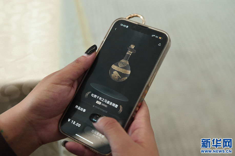 據(jù)介紹,西藏首個數(shù)字藏品《松贊干布之馬首圣銀壺》是基于西藏自治區(qū)工藝美術(shù)大師、西藏自治區(qū)級非物質(zhì)文化遺產(chǎn)代表性傳承人朵普·次嘎所作原始文物復(fù)制品的二創(chuàng)作品。