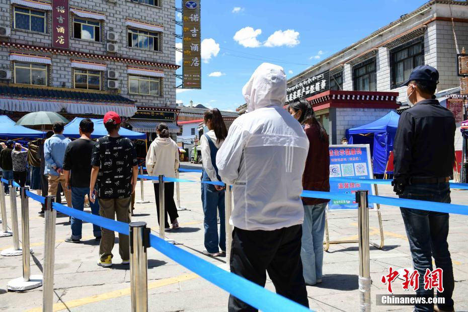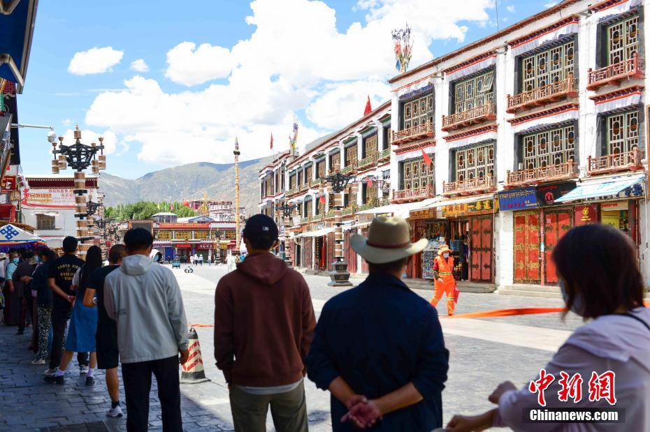 8月9日,西藏拉薩,市民在城關區(qū)八廓街道的核酸檢測現場排隊進行核酸檢測。當前,西藏拉薩市設置545個核酸檢測點開展全員核酸檢測。 中新社記者 貢嘎來松 攝