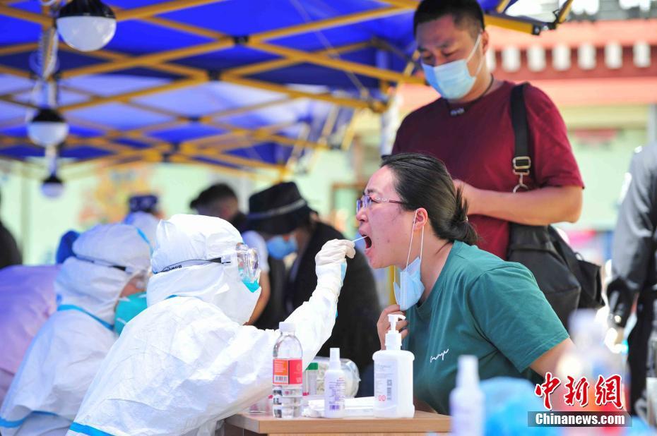 8月9日,西藏拉薩,市民在城關區(qū)八廓街道魯固社區(qū)的核酸檢測現場進行核酸檢測。當前,西藏拉薩市設置545個核酸檢測點開展全員核酸檢測。 中新社記者 貢嘎來松 攝