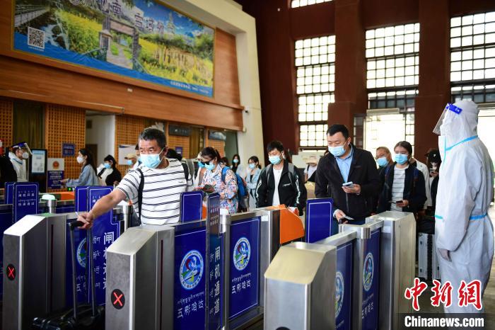 在拉薩火車站候車廳,記者觀察,旅客相較疫情前減少了很多。候車旅客中,有些是出藏游客,有些是返鄉(xiāng)的務(wù)工人員。除了拉薩往返日喀則的列車停運(yùn),其他列車正常運(yùn)行。當(dāng)日下午3點(diǎn)多,乘坐開往北京列車的旅客在工作人員和民警的引導(dǎo)下,陸續(xù)檢票進(jìn)站。