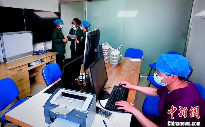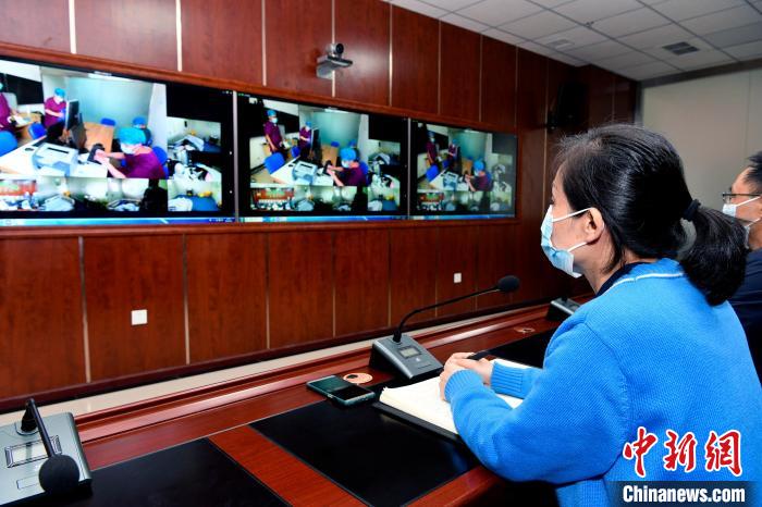 圖為西藏自治區(qū)第三人民醫(yī)院醫(yī)生在遠(yuǎn)程中心開展查房工作?!±盍?攝