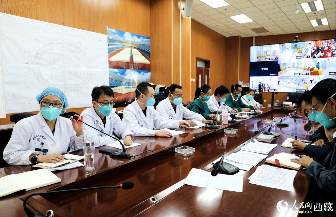 從體育場觀眾席上看整個方艙醫(yī)院外部環(huán)境干凈整潔,人員活動正常有序,偶爾有幾名患者跟在醫(yī)護(hù)人員身后,隔著一段距離去做檢查。在指揮中心的屏幕中,記者看到方艙內(nèi)患者狀態(tài)良好,平穩(wěn)有序,醫(yī)護(hù)人員也正在有條不紊地開展著各項(xiàng)工作,在指揮中心的會議室。拉薩市人民醫(yī)院副院長、拉薩市方艙醫(yī)院院長尼瑪正在與婦產(chǎn)、兒科等專家組進(jìn)行線上遠(yuǎn)程會診,了解一線相關(guān)情況。