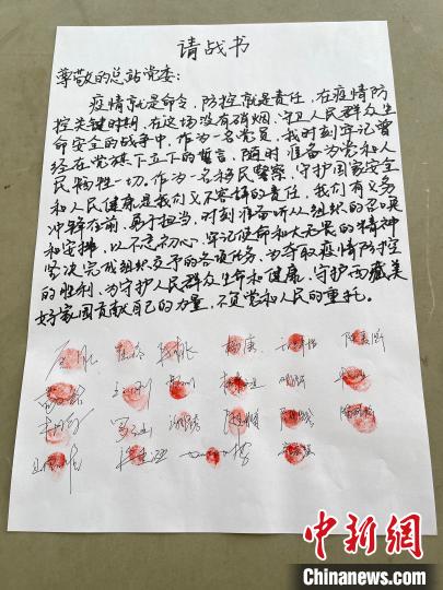 圖為執(zhí)法調(diào)查支隊民警寫下請戰(zhàn)書,簽名并按手印。陸鑫 攝