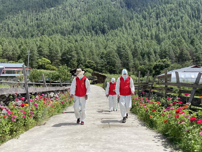 林芝市察隅縣布宗村新時(shí)代文明實(shí)踐站志愿者開展消殺工作。圖片由察隅縣提供