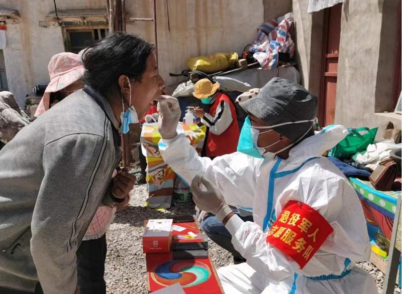 退役軍人志愿服務(wù)隊(duì)為群眾進(jìn)行核酸采樣。圖片由阿里地區(qū)改則縣新時(shí)代文明實(shí)踐中心提供