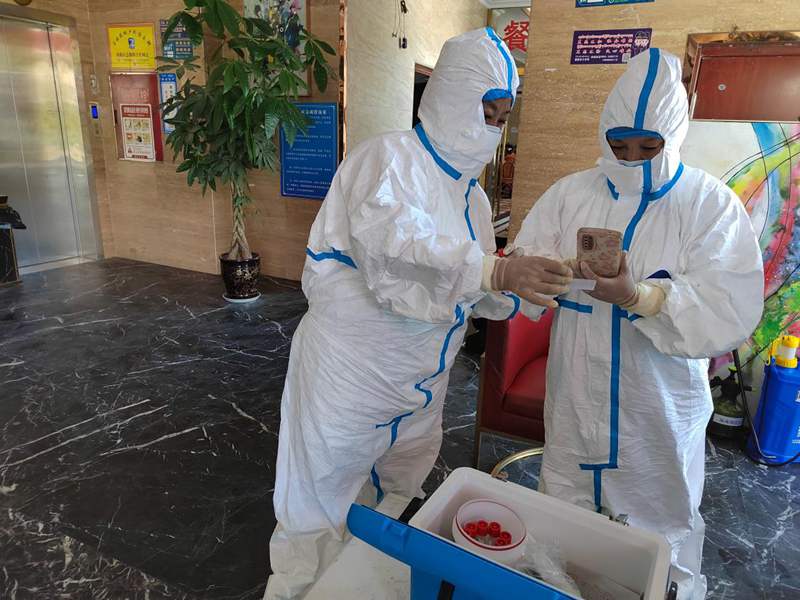 很快她們的申請有了回應(yīng),兩位老黨員變身“大白”,走上了核酸檢測崗位。從上午9點(diǎn)開始,上門為隔離人員進(jìn)行核酸采樣。一直到夜里11點(diǎn)才回家,卸下“大白”防護(hù)服時(shí)渾身已濕透?!澳軈⑴c到疫情防控志愿服務(wù)中,做點(diǎn)力所能及的事兒,是我的義務(wù)?!蓖白楷斦f。