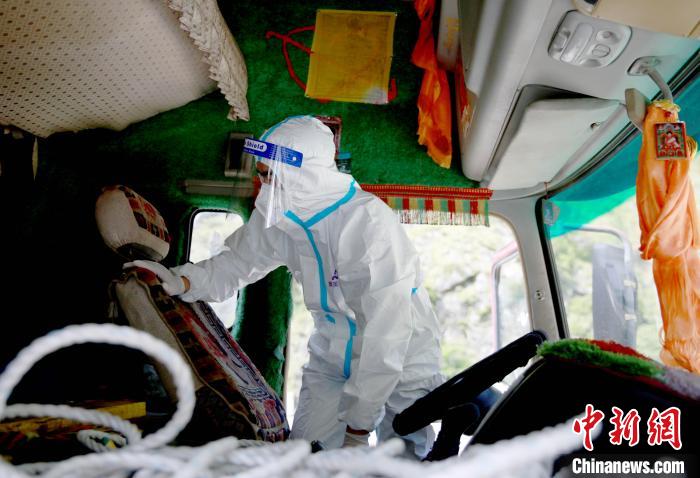 移民管理警察梅凡檢查進(jìn)入吉隆口岸限定區(qū)域卡口車輛?!⌒じ毁F 攝