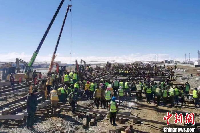 圖為海拔4500多米那曲車(chē)站道岔更換及信號(hào)系統(tǒng)改造施工現(xiàn)場(chǎng)。 國(guó)鐵青藏集團(tuán)有限公司 供圖
